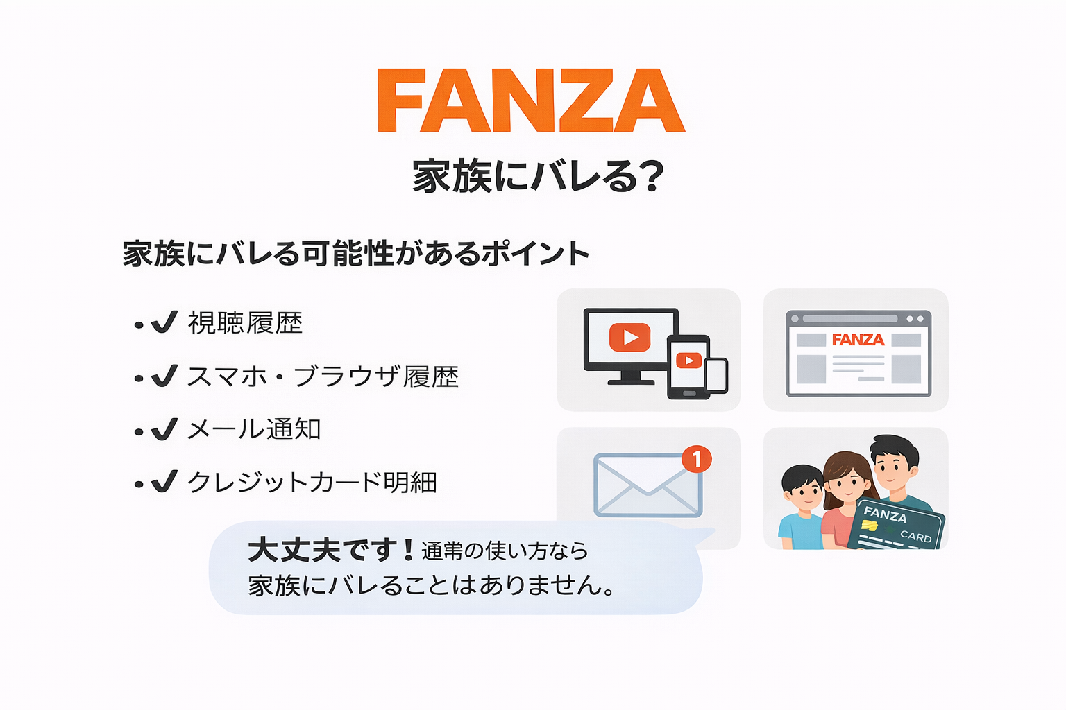 FANZAを利用するときに、「家族にバレないか心配」という方も多いと思います。